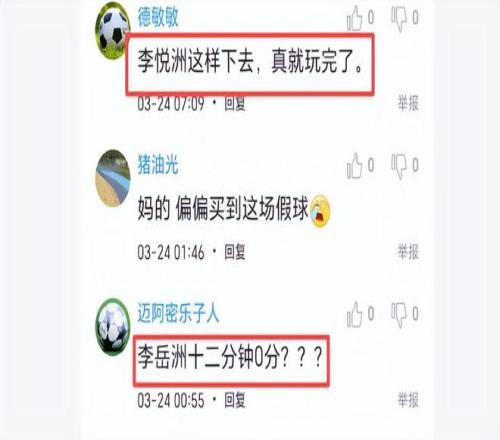 球迷對他也很失望,他們說:李悅洲這樣下去,真就玩完了。不知大家對李悅洲有何評價(jià)和建議。