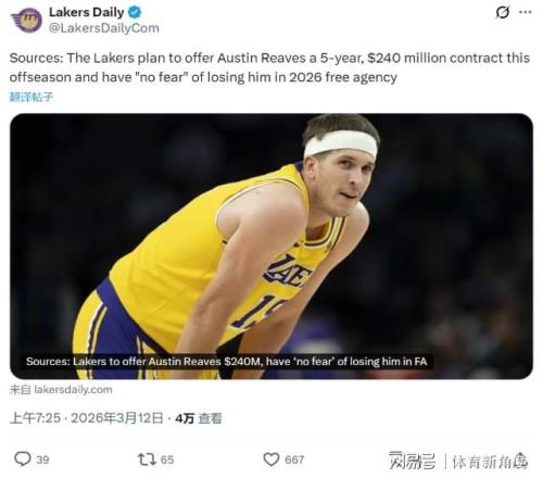 此外,Ashish Mathur還透露了一個(gè)重大消息。一旦小里的合同塵埃落定,湖期將會(huì)積極運(yùn)作,試圖招募“坤坤”加盟。湖人手中最大的籌碼,便是擁有三枚可用于交易的首輪簽,分別是2026年、2031年和2033年的首輪簽。