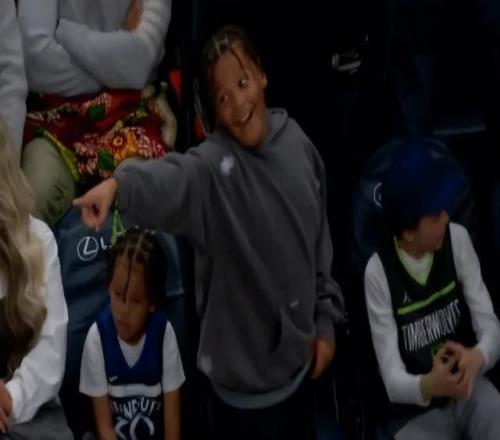 末節(jié)一個回合,蘭德爾單打弗萊明,一個轉(zhuǎn)身直接甩掉對手打成暴扣2+1,場邊的兒子站起來興奮慶祝。印象里蘭德爾兒子還是那個輸球之后會爆哭的小屁孩,沒想到現(xiàn)在都長這么大了。