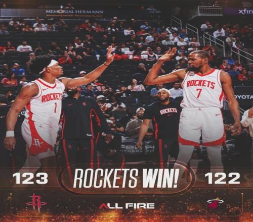 北京時間3月22日,NBA常規(guī)賽:火箭123-122絕殺熱火。阿德巴約21投12中,三分4中2,罰球8中6,狂砍32分21籃板4助攻2搶斷。阿門-湯普森17投10中,三分1中1,罰球3中3,砍下24分18籃板4助攻,最后時刻壓哨補籃絕殺。