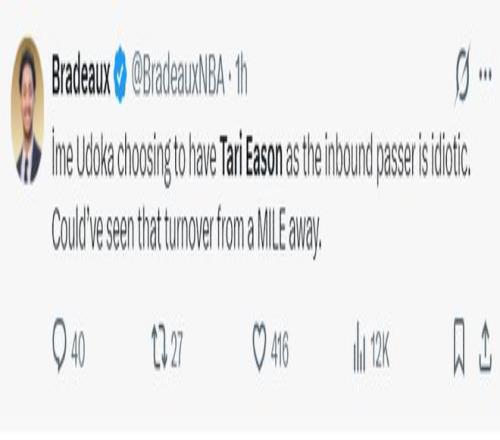 休媒:烏度卡讓伊森擔(dān)任底線傳球手真是愚蠢至極,從英里外就能看出他那個發(fā)球要失誤。