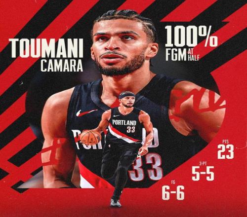 卡馬拉絕對是本場的最佳球員,投籃12中10,其中三分11中9(命中率約82%)砍下35分外加3板3助,得分和三分命中數(shù)均是個人生涯新高。