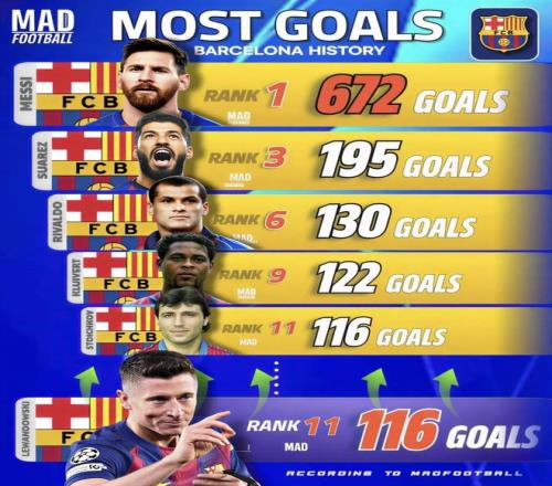 巴薩隊(duì)史最新進(jìn)球榜!萊萬名次躥升至第11或趕超里瓦爾多