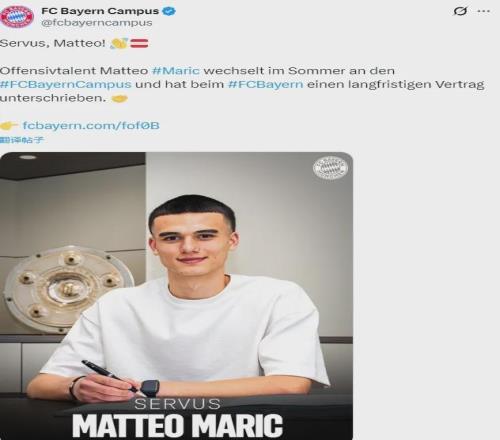 官方:拜仁宣布從薩爾茨堡紅牛簽下了新星馬特奧-馬里奇。