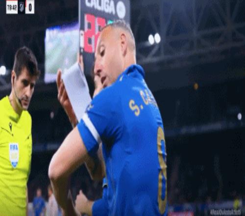 第80分鐘,皇家奧維耶多換人,老將卡索拉替補上場,