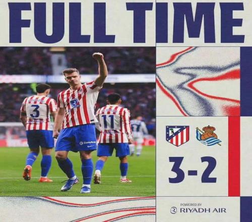 北京時(shí)間3月8日凌晨1點(diǎn)30分,馬德里競技主場迎戰(zhàn)皇家社會(huì)。上半場比賽,希門尼斯頭球擺渡,索爾洛特閃擊破門幫助馬競?cè)〉妙I(lǐng)先,僅僅過去4分鐘,索萊爾推射扳平比分。易邊再戰(zhàn),格列茲曼和岡薩雷斯精彩配合,前者腳后跟助攻后者破門,但奧亞薩瓦爾世界波再次火速扳平比分,岡薩雷斯頭槌破門上演梅開二度。最終,馬德里競技3比2險(xiǎn)勝皇家社會(huì),迎聯(lián)賽三連勝。