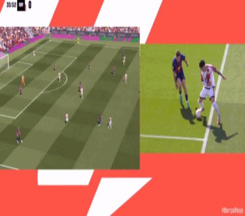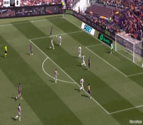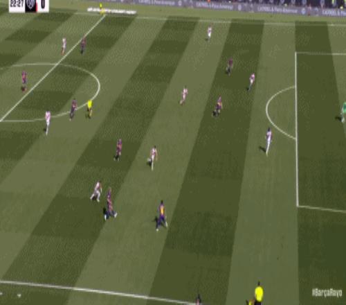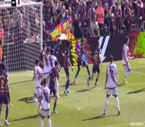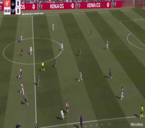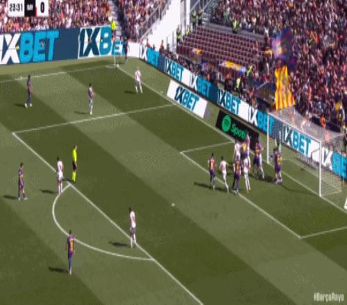 第24分鐘,坎塞洛角球助攻,阿勞霍頭球彈立柱入網(wǎng),巴薩1-0領(lǐng)先!