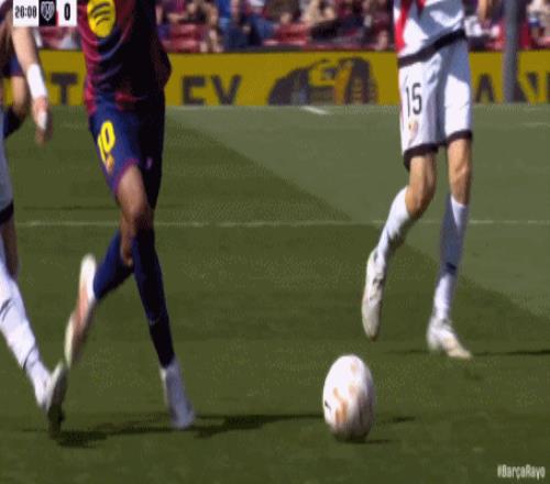 第22分鐘,亞馬爾外腳背傳中,拉菲尼亞打門沒打好