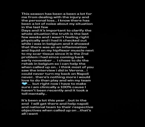 就算如此,盧卡庫(kù)也不過(guò)是在社交媒體上發(fā)表了一紙聲明,表示自己如今正在遭遇傷病的影響,選擇在比利時(shí)治療也是為了能夠在日后更好的幫助球隊(duì)。甚至表示“我永遠(yuǎn)不會(huì)背棄那不勒斯,沒(méi)有什么比能為球隊(duì)出戰(zhàn)并贏得勝利更讓我向往的事了?!鳖愃频谋響B(tài)他也曾對(duì)國(guó)米說(shuō)過(guò),但是最終還是選擇了背棄國(guó)米,拒絕了球隊(duì)的轉(zhuǎn)會(huì),只是如今輪到了那不勒斯而已。