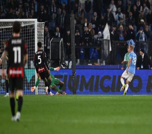 客戰(zhàn)拉齊奧,米蘭在邊路頹勢明顯。上輪的德比英雄埃斯圖皮尼安,在第23分鐘接到右側(cè)長傳,在遠端搶在伊薩克森身前完成爭頂,制造了米蘭本場的第一次威脅,也給了紅黑擁躉一些幻覺。僅僅3分鐘后,他就在防守端犯下致命錯誤:馬魯希奇后場長傳找伊薩克森,本來并非極具威脅,可厄瓜多爾人錯判球路,在對抗中失去平衡,踉蹌中眼睜睜看著丹麥邊鋒持球殺入禁區(qū),單刀赴會擊敗邁尼昂。埃斯圖皮尼安與伊薩克森的對抗,并未隨著這粒失球結(jié)束,米蘭左翼衛(wèi)肉眼可見地落于下風。慌亂的埃斯圖皮尼安,在下半場的頭球回傳還險些變成烏龍,逼迫邁尼昂做出了一次真正的撲救。他最終帶著一張黃牌狼狽下場。