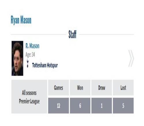 梅森在2020/21賽季被推上了風口浪尖,當時熱刺在聯(lián)賽杯決賽前一周解雇了穆里尼奧。他們最終輸?shù)袅四菆霰荣?,但梅森設法帶領球隊度過了動蕩時期,并獲得了第七名的成績。