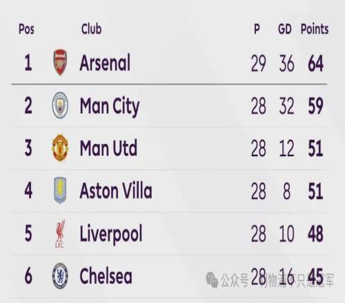 21后!阿森納先過1關:客戰(zhàn)曼城定冠軍,曼聯(lián)爭四領跑1豪門掉隊